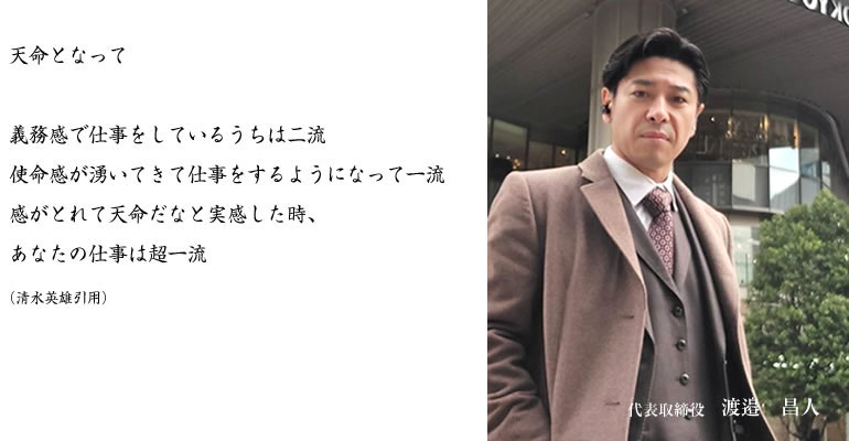 社員一人一人がいつか天命と実感し、誠心誠意万全の信頼に応えるべく取り組んで参りますので、