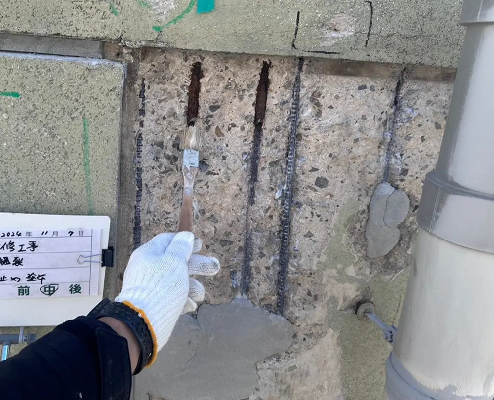 仮設・足場・防水・タイル・外階段補修・キュービクル(PCB)処分など多岐にわたる工種を一括で調整し、建物全体を総合的に修繕します。